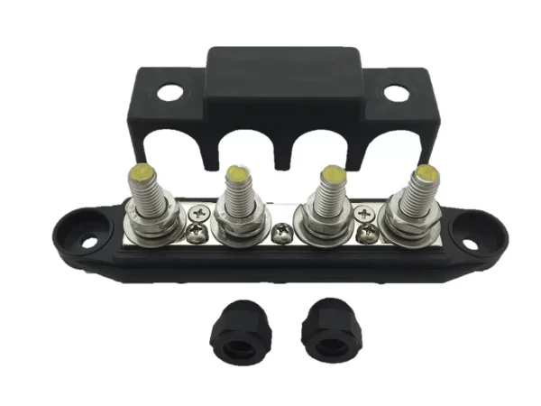 Verdeelstrip met afdekkap zwart M8 4 voudig VPE 1ST